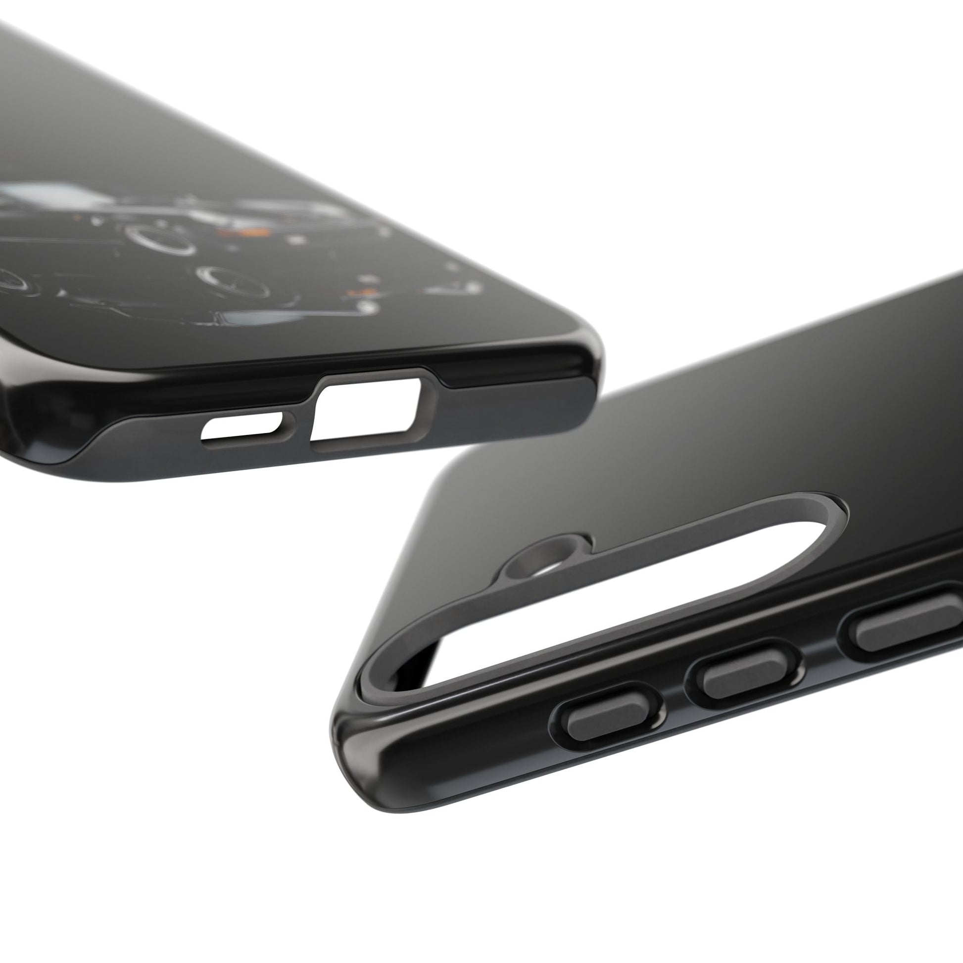 A sleek, protective phone case that marries automotive style with everyday defense. The glossy black shell showcases a low-profile, high-contrast sports-car graphic with subtle reflective detailing, giving the impression of motion even at rest. Inside, a soft TPU silicone liner cushions impacts while a rigid polycarbonate outer layer resists drops and scratches. The 3D wrap print maintains rich color depth and is UV-treated to stay sharp over time. Ports remain fully accessible, wireless charging-compatible, and finishes are available in glossy or matte to suit your preference. Built to meet strict safety and material standards, this dual-layer case feels premium in hand and keeps your phone looking deliberate and refined.